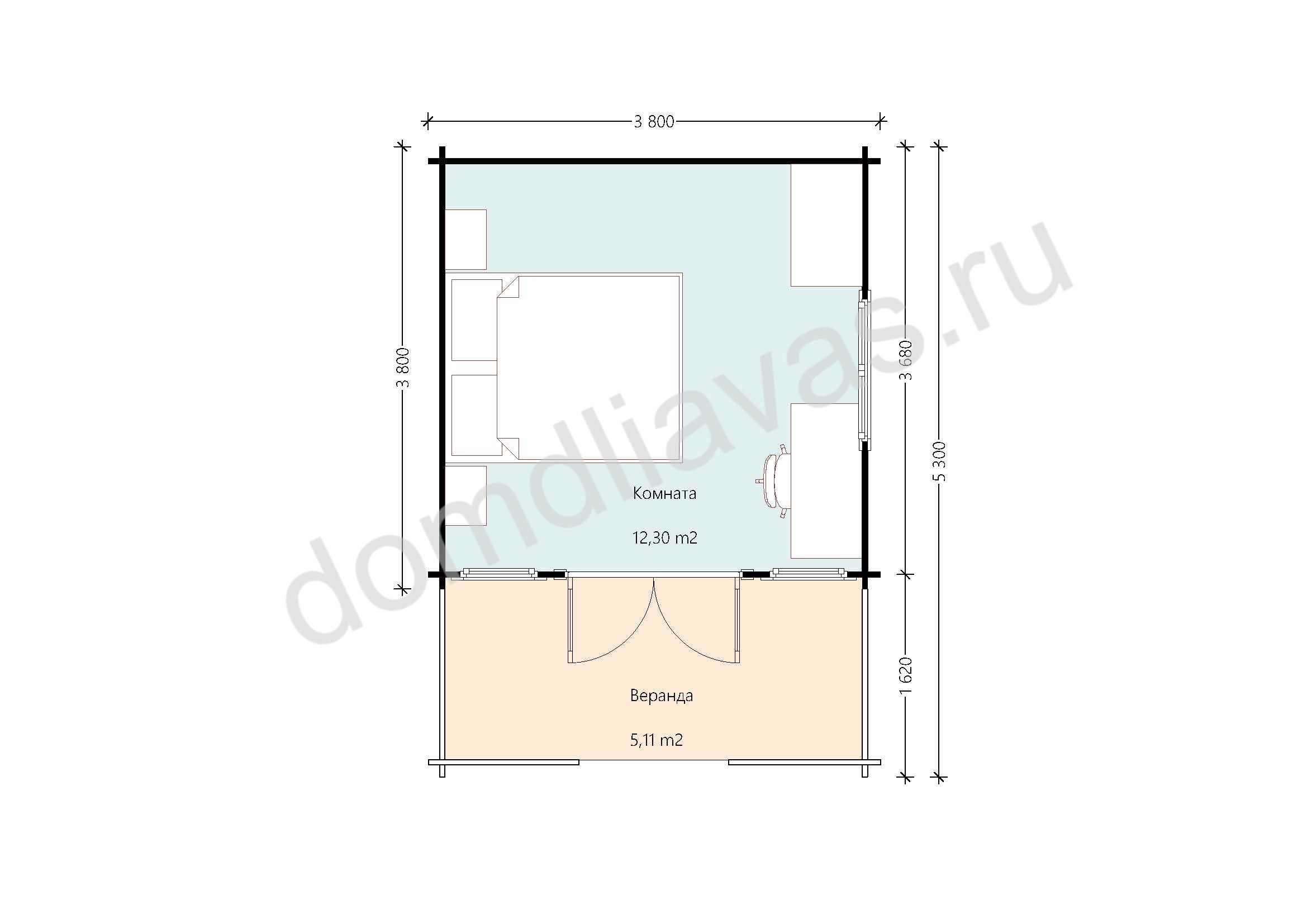 - Внешние размеры 3,8х5,3 м