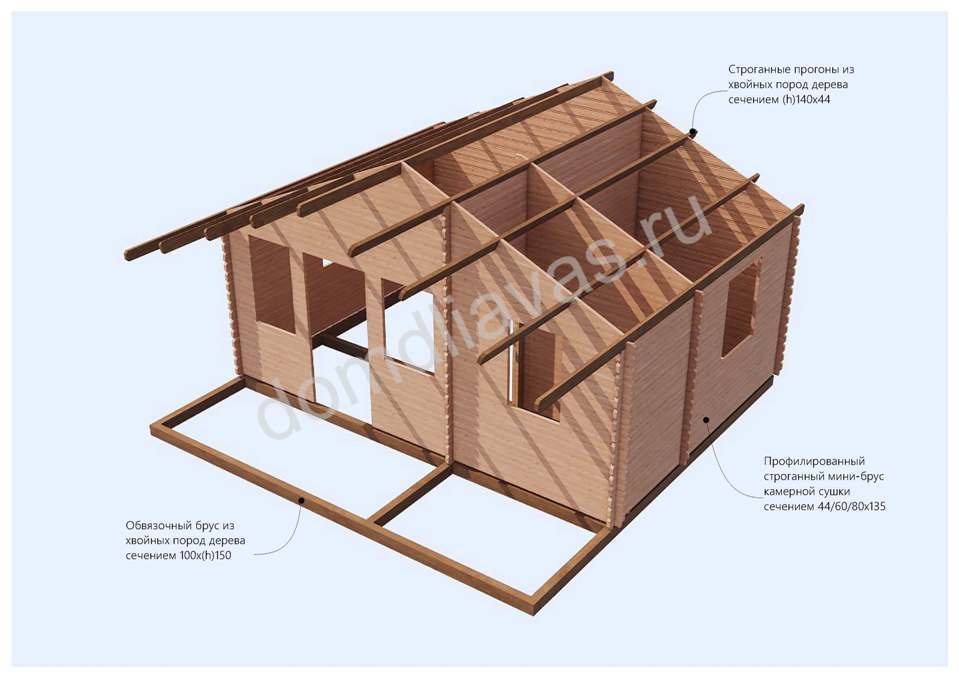 - Стены и пергородки из профилированного минибруса камерной сушки;