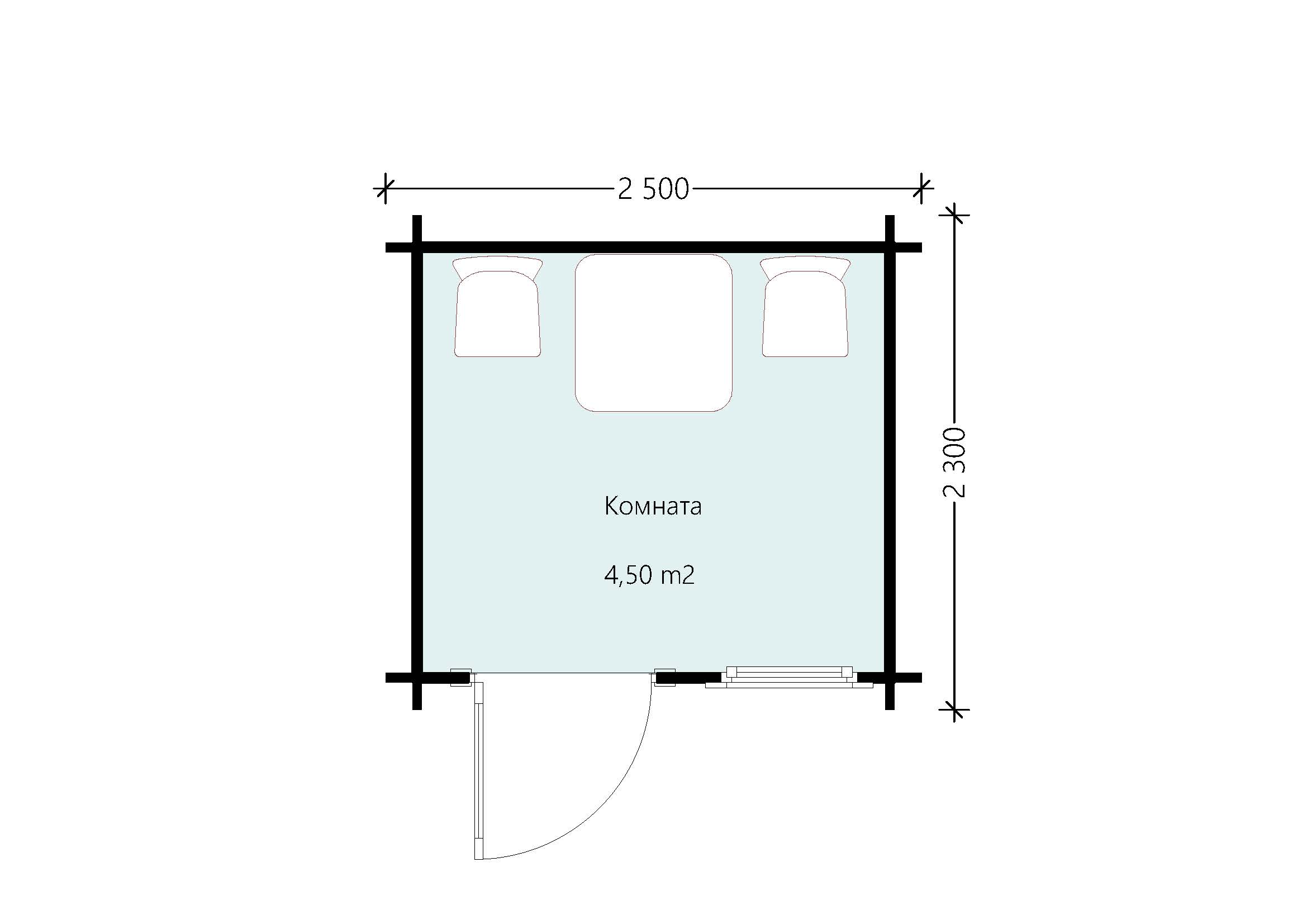 - Внешние размеры 2,5х2,3 м